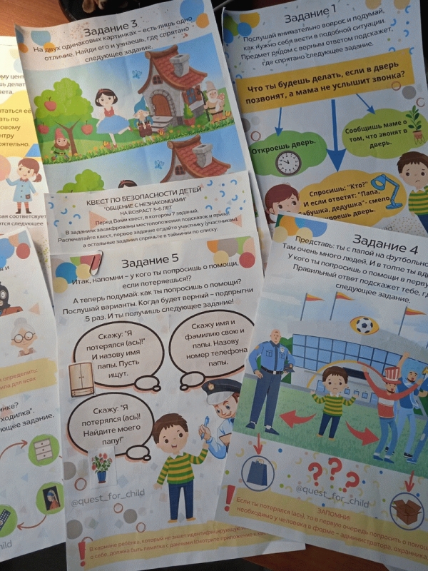 16 июня 2023 года для детей детского сада было проведено мероприятие " Дети и безопасность". Правила поведения детей с незнакомыми людьми на улице, как вести себя и к кому обратиться за помощью и как это сделать в случае если потерялся в большом магазине, на улице, как вырваться из рук злоумышленника и т.д. повторили играя в квест . Карточки с заданиями дети искали на участке и отвечали на вопросы. Также поиграли в подвижные ролевые игры.